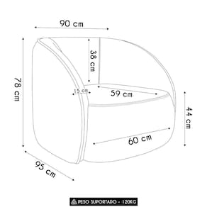 Dimensões do Produto Largura: 90cm. Altura: 78 cm. Profundidade: 95 cm. Peso: 42 Kg. Outras MedidasAltura do encosto: 38 cm. Largura do assento: 60 cm. Profundidade do assento: 59 cm. Altura do chão ao assento: 44 cm. Características do ProdutoMaterial da Estrutura: Madeira de Reflorestamento. Material da Espuma: Assento D-26 / Encosto e braços D-26. Peso Suportado: 120 Kg. Revestimento: Veludo. Tipo de Encosto: Fixo. Tipo de Assento: Fixo. Quantidade de Lugares: 1 Lugar. Tipo de Pés: Sapatas Plásticas. Material dos Pés: Plástico. Diferenciais:- Design moderno.- Sustentação do assento e encosto com cintas elásticas. - Estrutura em madeira de reflorestamento.- Adornos decorativos. - Acabamento inferior em Kami. - Pés com sapatas plásticas. Sistema de Montagem: O produto é enviado montado, sendo necessário somente parafusar os pés. Manual de Montagem: Não. Conteúdo da Embalagem: 2 Poltronas. Volumes: 2 Volumes. do Fabricante: 90 dias contra defeito de fabricação. Montagem: Recomendamos que seja feita por um . Recomendação de Limpeza: Utilize pano levemente úmido. Observações importantes- Produto para uso residencial em ambiente interno, não devendo ficar exposto diretamente ao sol, calor e umidades excessivas.- Pode haver alguma diferença de tonalidade entre a imagem e o produto real, por conta do tratamento de imagens e a calibração de cores do seu monitor.- As imagens são meramente ilustrativas, não acompanham objetos de decoração e eletrônicos.- Ao receber a mercadoria, o cliente deve verificar as condições da embalagem, caso haja alguma não assine o comprovante de recebimento.- Montagem, desmontagem e outras instalações serão de responsabilidade do cliente. Não nos responsabilizamos, no ato da , por subir escadas/elevadores ou pelo transporte por guincho em apartamentos. Eventuais despesas são de responsabilidade do comprador.- Confira as dimensões do produto e certifique-se de que passará normalmente por supostos elevadores, portas, escadas e/ou corredores de sua residência.