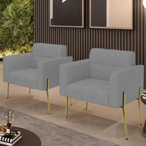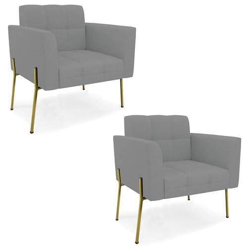 Você está procurando um Kit Poltrona que combine com a sua Sala De Estar, recepção ou seu quarto, que ofereça conforto e qualidade? Então você vai adorar a Poltrona Para Sala Pé Metal Dourado Kit 2 Ana Linho Grafite White, da Ibiza!