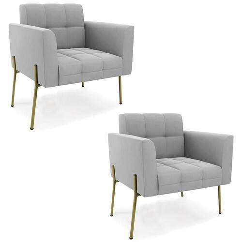 Procurando um Kit Poltrona que combine com a sua Sala De Estar, recepção ou seu quarto, que ofereça conforto e qualidade? Então você vai adorar a Poltrona Para Sala Pé Metal Dourado Kit 2 Ana Suede Cinza, da Ibiza!