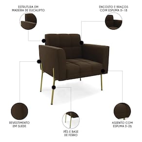 Procurando um Kit Poltrona que combine com a sua Sala De Estar, recepção ou seu quarto, que ofereça conforto e qualidade? Então você vai adorar a Poltrona Para Sala Pé Metal Dourado Kit 2 Ana Suede Marrom White, da Ibiza!