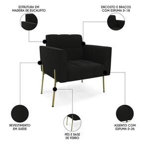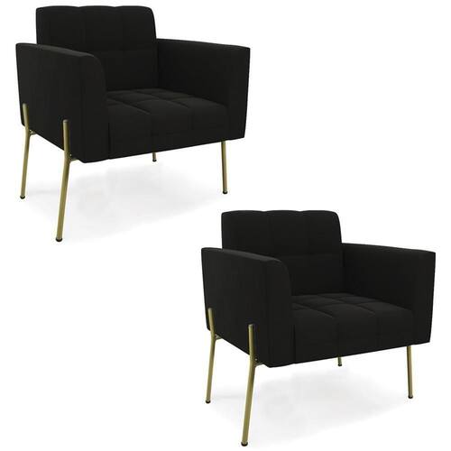 Procurando um Kit Poltrona que combine com a sua Sala De Estar, recepção ou seu quarto, que ofereça conforto e qualidade? Então você vai adorar a Poltrona Para Sala Pé Metal Dourado Kit 2 Ana Suede Preto, da Ibiza!