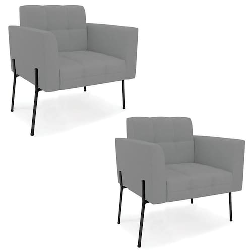 Você está procurando um Kit Poltrona que combine com a sua Sala De Estar, recepção ou seu quarto, que ofereça conforto e qualidade? Então você vai adorar a Poltrona Para Sala Pé Metal Preto Kit 2 Ana Linho Grafite White, da Ibiza!
