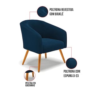 Tem novidades chegando por aqui! Olha só essa nossa inédita Poltrona Stella Bouclê. A Poltrona Stella Bouclê é para todas as ocasiões, é ideal para você relaxar, assistir tv ou ler um livro, mantendo-o confortável ao longo do dia! Um estofado versátil, que foge do convencional pelo seu design e tecido luxuoso. Seu formato curvo, marcante e sofisticado, oferece conforto de forma excepcional, com aquela sensação de abraço, que deixa o coração quentinho! Ela é fácil de transportar, pois tem um peso leve e um tamanho compacto. Ela suporta até 120 kg de peso, podendo ser utilizada por pessoas de diferentes biotipos. Desenvolvida com atenção aos detalhes para atender todas suas expectativas e necessidades, seu aspecto arredondado e anatômico possibilita que a postura fique sempre alinhada mantendo a coluna na posição correta. Ela dispõe de um acabamento impecável revestida em Bouclê em tom Azul, um tecido um tecido maleável que além de ser muito bonito é a grande tendência do momento, uma lã mais refinada e quente com toque suave semelhante à textura natural da ovelha. Contém uma estrutura em madeira de reflorestamento eucalipto, sua sustentação é dada pelos Pés Palito Castanho, que garante mais segurança e firmeza ao sentar-se. Ela tem um acabamento reforçado e espuma de qualidade D23, que oferece maciez e aconchego. Além do mais ela tem assento com persintas elásticas, que proporcionam flexibilidade e conforto. A Poltrona Stella é um produto de alta qualidade, beleza e funcionalidade. Ah! Vale a pena lembrar que a Poltrona Stella Bouclê, foi produzida em quantidades limitadas para aqueles que procuram criar um visual diferenciado e exclusivo. Então, não deixe de aproveitar esse lançamento, hem! Leve seu Kit 02 Poltronas agora mesmo.