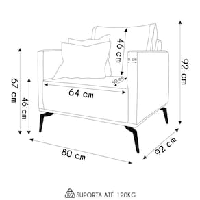A Poltrona Decorativa tem os pés de aço e acabamento elegante na cor preta, ela oferece não apenas estabilidade, mas também um toque de sofisticação ao ambiente assim como o seu revestimento em linho. O assento, feito com espuma HR28 e plumante de silicone, promete ser o refúgio perfeito após um longo dia, enquanto as duas almofadas decorativas complementam o visual com um charme adicional. A durabilidade é assegurada pela estrutura de madeira maciça de eucalipto, e o encosto em almofada solta com fibra de silicone se adapta perfeitamente ao corpo, proporcionando uma experiência de relaxamento inigualável. Esta Poltrona Para Sala não é apenas um móvel, mas um investimento em bem-estar e estilo para a sua Sala de Estar.