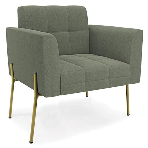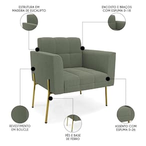 Se você quer uma poltrona que combine com a sua Sala De Estar, recepção ou seu quarto, que ofereça conforto e qualidade? Então você vai adorar a Poltrona Para Sala Pés Metálicos Dourado Ana Bouclé Menta, da Ibiza!