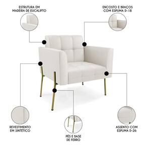Que tal uma poltrona que combine com a sua Sala De Estar, recepção ou seu quarto, que ofereça conforto e qualidade? Então você vai adorar a Poltrona Para Sala Pés Metálicos Dourado Ana Sintético Bege, da Ibiza!
