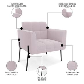 Você está procurando uma poltrona que combine com a sua Sala De Estar, recepção ou seu quarto, que ofereça conforto e qualidade? Então você vai adorar a Poltrona Para Sala Pés Metálicos Preto Ana Bouclé Rosê, da Ibiza!