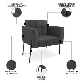 Você está procurando uma poltrona que combine com a sua Sala De Estar, recepção ou seu quarto, que ofereça conforto e qualidade? Então você vai adorar a Poltrona Para Sala Pés Metálicos Preto Ana Sintético Preto, da Ibiza!
