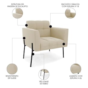Você está procurando uma poltrona que combine com a sua Sala De Estar, recepção ou seu quarto, que ofereça conforto e qualidade? Então você vai adorar a Poltrona Para Sala Pés Metálicos Preto Ana Suede Bege, da Ibiza!