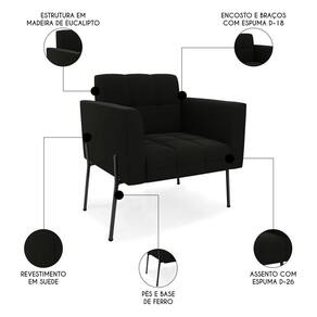 Você está procurando uma poltrona que combine com a sua Sala De Estar, recepção ou seu quarto, que ofereça conforto e qualidade? Então você vai adorar a Poltrona Para Sala Pés Metálicos Preto Ana Suede Preto, da Ibiza!