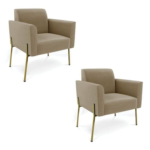 Todo mundo gosta de um ambiente bem decorado, e se for novidade melhor ainda não é mesmo? A D'Rossi, além de entregar beleza, qualidade e confiança aos clientes, ela dispõe das melhores opções em produtos, disponíveis no mercado! Portanto, se você quer um produto sofisticado, opte pela Poltrona Marisa. Ela possui um design lindo e sofisticado, com pés de Ferro Lateral Dourado e revestimento em tecido Suede, que harmonizam com qualquer ambiente. Esta mobília fica perfeita na sala de estar, recepções, mesa de jantar ou qualquer outro espaço que você queira decorar com estilo e bom gosto. Ela contém uma estrutura em madeira de reflorestamento eucalipto, que garante a resistência e a sustentabilidade do produto. Ela suporta até 120 kg de peso, podendo ser utilizada por pessoas de diferentes biotipos. Ela tem um acabamento reforçado e espuma de qualidade D-23, garantindo flexibilidade e conforto ao usuário. A Poltrona Marisa é um produto de alta qualidade, beleza e funcionalidade. Ela é fácil de transportar, pois tem um peso leve e um tamanho compacto. A Poltrona Marisa é ideal, para dar aquele realce que seu ambiente precisa. Tenho certeza que esse móvel é a melhor compra que você irá fazer. Garanta já seu kit 2 Poltronas Marisa e se acomode da melhor maneira possível! Dimensões da Poltrona: Altura total: 81 cm Largura total: 76 cm Profundidade total: 64 cm Altura do encosto: 36 cm Largura do assento: 47 cm Profundidade do assento: 48 cm Altura do chão ao assento: 45 cm Espessura do assento: 18 cm Tamanho dos pés: 30 cm Espessura do braço: 9 cm Peso: 14 kg Especificações do Produto Estrutura: Madeira Eucalipto Espuma: D-23 Tecido: Suede Tipo de pés: Pés de Ferro Dourado Peso suportado: Até 120 Kg Garantia: 90 dias contra defeito de fabricação Montagem: O produto vai montado, apenas parafusar a base Instruções de limpeza: Utilizar um pano limpo e levemente úmido Você irá receber: Poltronas - Entregue em: 02 Volumes