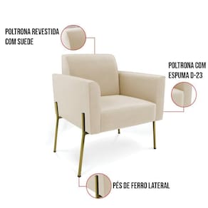 Todo mundo gosta de um ambiente bem decorado, e se for novidade melhor ainda não é mesmo? A D'Rossi, além de entregar beleza, qualidade e confiança aos clientes, ela dispõe das melhores opções em produtos, disponíveis no mercado! Portanto, se você quer um produto sofisticado, opte pela Poltrona Marisa. Ela possui um design lindo e sofisticado, com pés de Ferro Lateral Dourado e revestimento em tecido Suede Bege, que harmonizam com qualquer ambiente. Esta mobília fica perfeita na sala de estar, recepções, mesa de jantar ou qualquer outro espaço que você queira decorar com estilo e bom gosto. Ela contém uma estrutura em madeira de reflorestamento eucalipto, que garante a resistência e a sustentabilidade do produto. Ela suporta até 120 kg de peso, podendo ser utilizada por pessoas de diferentes biotipos. Ela tem um acabamento reforçado e espuma de qualidade D-23, garantindo flexibilidade e conforto ao usuário. A Poltrona Marisa é um produto de alta qualidade, beleza e funcionalidade. Ela é fácil de transportar, pois tem um peso leve e um tamanho compacto. A Poltrona Marisa é ideal, para dar aquele realce que seu ambiente precisa. Tenho certeza que esse móvel é a melhor compra que você irá fazer. Garanta já sua Poltrona Marisa e se acomode da melhor maneira possível!Dimensões da Poltrona: Altura total: 81 cm Largura total: 76 cm Profundidade total: 64 cm Altura do encosto: 36 cm Largura do assento: 47 cm Profundidade do assento: 48 cm Altura do chão ao assento: 45 cm Espessura do assento: 18 cm Tamanho dos pés: 30 cm Espessura do braço: 9 cm Peso: 14 kg Especificações do Produto Estrutura: Madeira Eucalipto Espuma: D-23 Tecido: Suede Tipo de pés: Pés de Ferro Dourado Peso suportado: Até 120 Kg Garantia: 90 dias contra defeito de fabricação Montagem: O produto vai montado, apenas parafusar a base Instruções de limpeza: Utilizar um pano limpo e levemente úmido Você irá receber: Poltronas - Entregue em: 01 Volumes