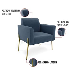 Todo mundo gosta de um ambiente bem decorado, e se for novidade melhor ainda não é mesmo? A D'Rossi, além de entregar beleza, qualidade e confiança aos clientes, ela dispõe das melhores opções em produtos, disponíveis no mercado! Portanto, se você quer um produto sofisticado, opte pela Poltrona Marisa. Ela possui um design lindo e sofisticado, com pés de Ferro Lateral Dourado e revestimento em tecido Suede, que harmonizam com qualquer ambiente. Esta mobília fica perfeita na sala de estar, recepções, mesa de jantar ou qualquer outro espaço que você queira decorar com estilo e bom gosto. Ela contém uma estrutura em madeira de reflorestamento eucalipto, que garante a resistência e a sustentabilidade do produto. Ela suporta até 120 kg de peso, podendo ser utilizada por pessoas de diferentes biotipos. Ela tem um acabamento reforçado e espuma de qualidade D-23, garantindo flexibilidade e conforto ao usuário. A Poltrona Marisa é um produto de alta qualidade, beleza e funcionalidade. Ela é fácil de transportar, pois tem um peso leve e um tamanho compacto. A Poltrona Marisa é ideal, para dar aquele realce que seu ambiente precisa. Tenho certeza que esse móvel é a melhor compra que você irá fazer. Garanta já sua Poltrona Marisa e se acomode da melhor maneira possível!
