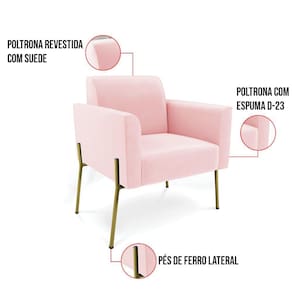 Todo mundo gosta de um ambiente bem decorado, e se for novidade melhor ainda não é mesmo? A D'Rossi, além de entregar beleza, qualidade e confiança aos clientes, ela dispõe das melhores opções em produtos, disponíveis no mercado! Portanto, se você quer um produto sofisticado, opte pela Poltrona Marisa. Ela possui um design lindo e sofisticado, com pés de Ferro Lateral Dourado e revestimento em tecido Suede Rosa Bebê, que harmonizam com qualquer ambiente. Esta mobília fica perfeita na sala de estar, recepções, mesa de jantar ou qualquer outro espaço que você queira decorar com estilo e bom gosto. Ela contém uma estrutura em madeira de reflorestamento eucalipto, que garante a resistência e a sustentabilidade do produto. Ela suporta até 120 kg de peso, podendo ser utilizada por pessoas de diferentes biotipos. Ela tem um acabamento reforçado e espuma de qualidade D-23, garantindo flexibilidade e conforto ao usuário. A Poltrona Marisa é um produto de alta qualidade, beleza e funcionalidade. Ela é fácil de transportar, pois tem um peso leve e um tamanho compacto. A Poltrona Marisa é ideal, para dar aquele realce que seu ambiente precisa. Tenho certeza que esse móvel é a melhor compra que você irá fazer. Garanta já sua Poltrona Marisa e se acomode da melhor maneira possível!