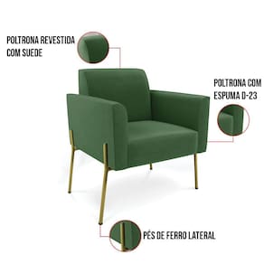 Todo mundo gosta de um ambiente bem decorado, e se for novidade melhor ainda não é mesmo? A D'Rossi, além de entregar beleza, qualidade e confiança aos clientes, ela dispõe das melhores opções em produtos, disponíveis no mercado! Portanto, se você quer um produto sofisticado, opte pela Poltrona Marisa. Ela possui um design lindo e sofisticado, com pés de Ferro Lateral Dourado e revestimento em tecido Suede Verde, que harmonizam com qualquer ambiente. Esta mobília fica perfeita na sala de estar, recepções, mesa de jantar ou qualquer outro espaço que você queira decorar com estilo e bom gosto. Ela contém uma estrutura em madeira de reflorestamento eucalipto, que garante a resistência e a sustentabilidade do produto. Ela suporta até 120 kg de peso, podendo ser utilizada por pessoas de diferentes biotipos. Ela tem um acabamento reforçado e espuma de qualidade D-23, garantindo flexibilidade e conforto ao usuário. A Poltrona Marisa é um produto de alta qualidade, beleza e funcionalidade. Ela é fácil de transportar, pois tem um peso leve e um tamanho compacto. A Poltrona Marisa é ideal, para dar aquele realce que seu ambiente precisa. Tenho certeza que esse móvel é a melhor compra que você irá fazer. Garanta já sua Poltrona Marisa e se acomode da melhor maneira possível!