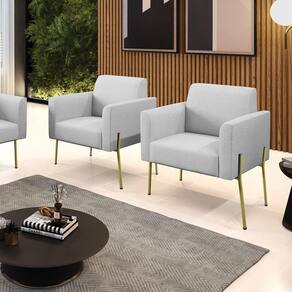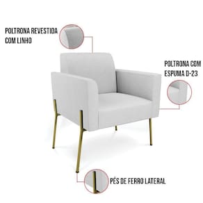Todo mundo gosta de um ambiente bem decorado, e se for novidade melhor ainda não é mesmo? A D'Rossi, além de entregar beleza, qualidade e confiança aos clientes, ela dispõe das melhores opções em produtos, disponíveis no mercado! Portanto, se você quer um produto sofisticado, opte pela Poltrona Marisa. Ela possui um design lindo e sofisticado, com pés de Ferro Lateral Dourado e revestimento em tecido Linho, que harmonizam com qualquer ambiente. Esta mobília fica perfeita na sala de estar, recepções, mesa de jantar ou qualquer outro espaço que você queira decorar com estilo e bom gosto. Ela contém uma estrutura em madeira de reflorestamento eucalipto, que garante a resistência e a sustentabilidade do produto. Ela suporta até 120 kg de peso, podendo ser utilizada por pessoas de diferentes biotipos. Ela tem um acabamento reforçado e espuma de qualidade D-23, garantindo flexibilidade e conforto ao usuário. A Poltrona Marisa é um produto de alta qualidade, beleza e funcionalidade. Ela é fácil de transportar, pois tem um peso leve e um tamanho compacto. A Poltrona Marisa é ideal, para dar aquele realce que seu ambiente precisa. Tenho certeza que esse móvel é a melhor compra que você irá fazer. Garanta já seu kit 2 Poltronas Marisa e se acomode da melhor maneira possível! Dimensões da Poltrona: Altura total: 81 cm Largura total: 76 cm Profundidade total: 64 cm Altura do encosto: 36 cm Largura do assento: 47 cm Profundidade do assento: 48 cm Altura do chão ao assento: 45 cm Espessura do assento: 18 cm Tamanho dos pés: 30 cm Espessura do braço: 9 cm Peso: 14 kg Especificações do Produto Estrutura: Madeira Eucalipto Espuma: D-23 Tecido: Linho Tipo de pés: Pés de Ferro Dourado Peso suportado: Até 120 Kg Garantia: 90 dias contra defeito de fabricação Montagem: O produto vai montado, apenas parafusar a base Instruções de limpeza: Utilizar um pano limpo e levemente úmido Você irá receber: Poltronas - Entregue em: 02 Volumes