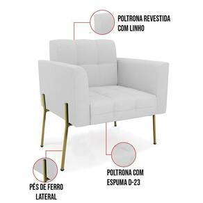 Você gosta de colecionar vários momentos memoráveis com sua família e amigos? Que tal recebê-los, com móveis de altíssima qualidade que só a D'Rossi tem? A Poltrona Elisa é adequada para você! Seu design retrô é a grande tendência do momento. Pode ser usada em diversos espaços da casa, em salas, hall de entrada, quartos, cozinhas, varanda, sacada, escritório, dentre outros. Contém as seguintes características: A estrutura é feita Madeira de Eucalipto 100% de reflorestamento, Pés de Ferro Dourado que além de ser resistente e durável, suporta em média até 120 kg. Assento, encosto e braços, contém enchimento de espuma D-23 e é estofada em tecido Linho no tom Cinza, que oferece muito conforto e resistência ao sentar, com aquela sensação de maciez e aconchego. Possui também, detalhes de costura no encosto e assento, resultando em um acabamento impecável, conferindo muito mais valor e elegância ao seu espaço. Para complementar a decoração com essa linda poltrona, a dica é utilizar mantas, almofadas ou vasinho de flor. E pronto, seu cantinho estará perfeito para descansar e relaxar! Aqui, você encontra várias opções, para que seus amigos e familiares se sintam acolhidos. Garanta já sua Poltrona.