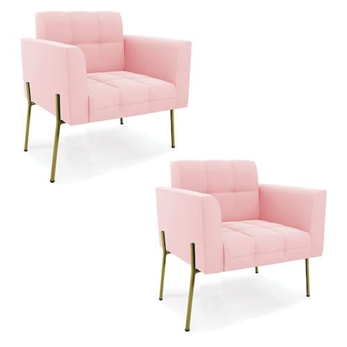 Poltrona Pé De Ferro Dourado Para Sala Kit 2 Elisa Suede D03 - D'rossi Cor Rosa Bebê
