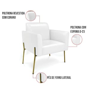 Poltrona Pé de Ferro Dourado para Sala Marisa Corano D03 - D`Rossi - Branco