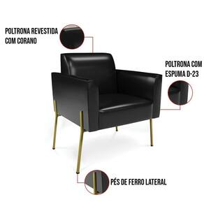 Todo mundo gosta de um ambiente bem decorado, e se for novidade melhor ainda não é mesmo? A D'Rossi, além de entregar beleza, qualidade e confiança aos clientes, ela dispõe das melhores opções em produtos, disponíveis no mercado! Portanto, se você quer um produto sofisticado, opte pela Poltrona Marisa. Ela possui um design lindo e sofisticado, com pés de Ferro Lateral Dourado e revestimento em tecido Corano, que harmonizam com qualquer ambiente. Esta mobília fica perfeita na sala de estar, recepções, mesa de jantar ou qualquer outro espaço que você queira decorar com estilo e bom gosto. Ela contém uma estrutura em madeira de reflorestamento eucalipto, que garante a resistência e a sustentabilidade do produto. Ela suporta até 120 kg de peso, podendo ser utilizada por pessoas de diferentes biotipos. Ela tem um acabamento reforçado e espuma de qualidade D-23, garantindo flexibilidade e conforto ao usuário. A Poltrona Marisa é um produto de alta qualidade, beleza e funcionalidade. Ela é fácil de transportar, pois tem um peso leve e um tamanho compacto. A Poltrona Marisa é ideal, para dar aquele realce que seu ambiente precisa. Tenho certeza que esse móvel é a melhor compra que você irá fazer. Garanta já sua Poltrona Marisa e se acomode da melhor maneira possível! Dimensões da Poltrona: Altura total: 81 cm Largura total: 76 cm Profundidade total: 64 cm Altura do encosto: 36 cm Largura do assento: 47 cm Profundidade do assento: 48 cm Altura do chão ao assento: 45 cm Espessura do assento: 18 cm Tamanho dos pés: 30 cm Espessura do braço: 9 cm Peso: 14 kg Especificações do Produto Estrutura: Madeira Eucalipto Espuma: D-23 Tecido: Corano Tipo de pés: Pés de Ferro Dourado Peso suportado: Até 120 Kg Garantia: 90 dias contra defeito de fabricação Montagem: O produto vai montado, apenas parafusar a base Instruções de limpeza: Utilizar um pano limpo e levemente úmido Você irá receber: 01 Poltrona - Entregue em: 01 Volume