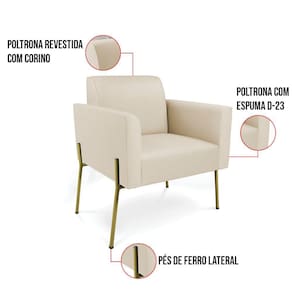 Todo mundo gosta de um ambiente bem decorado, e se for novidade melhor ainda não é mesmo? A D'Rossi, além de entregar beleza, qualidade e confiança aos clientes, ela dispõe das melhores opções em produtos, disponíveis no mercado! Portanto, se você quer um produto sofisticado, opte pela Poltrona Marisa. Ela possui um design lindo e sofisticado, com pés de Ferro Lateral Dourado e revestimento em tecido Corino Bege, que harmonizam com qualquer ambiente. Esta mobília fica perfeita na sala de estar, recepções, mesa de jantar ou qualquer outro espaço que você queira decorar com estilo e bom gosto. Ela contém uma estrutura em madeira de reflorestamento eucalipto, que garante a resistência e a sustentabilidade do produto. Ela suporta até 120 kg de peso, podendo ser utilizada por pessoas de diferentes biotipos. Ela tem um acabamento reforçado e espuma de qualidade D-23, garantindo flexibilidade e conforto ao usuário. A Poltrona Marisa é um produto de alta qualidade, beleza e funcionalidade. Ela é fácil de transportar, pois tem um peso leve e um tamanho compacto. A Poltrona Marisa é ideal, para dar aquele realce que seu ambiente precisa. Tenho certeza que esse móvel é a melhor compra que você irá fazer. Garanta já sua Poltrona Marisa e se acomode da melhor maneira possível!