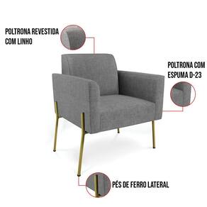Todo mundo gosta de um ambiente bem decorado, e se for novidade melhor ainda não é mesmo? A D'Rossi, além de entregar beleza, qualidade e confiança aos clientes, ela dispõe das melhores opções em produtos, disponíveis no mercado! Portanto, se você quer um produto sofisticado, opte pela Poltrona Marisa. Ela possui um design lindo e sofisticado, com pés de Ferro Lateral Dourado e revestimento em tecido Linho Grafite, que harmonizam com qualquer ambiente. Esta mobília fica perfeita na sala de estar, recepções, mesa de jantar ou qualquer outro espaço que você queira decorar com estilo e bom gosto. Ela contém uma estrutura em madeira de reflorestamento eucalipto, que garante a resistência e a sustentabilidade do produto. Ela suporta até 120 kg de peso, podendo ser utilizada por pessoas de diferentes biotipos. Ela tem um acabamento reforçado e espuma de qualidade D-23, garantindo flexibilidade e conforto ao usuário. A Poltrona Marisa é um produto de alta qualidade, beleza e funcionalidade. Ela é fácil de transportar, pois tem um peso leve e um tamanho compacto. A Poltrona Marisa é ideal, para dar aquele realce que seu ambiente precisa. Tenho certeza que esse móvel é a melhor compra que você irá fazer. Garanta já sua Poltrona Marisa e se acomode da melhor maneira possível!