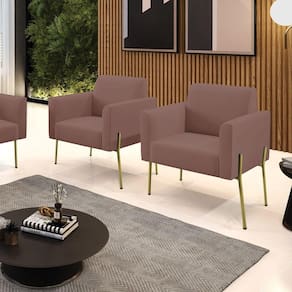 Todo mundo gosta de um ambiente bem decorado, e se for novidade melhor ainda não é mesmo? A D'Rossi, além de entregar beleza, qualidade e confiança aos clientes, ela dispõe das melhores opções em produtos, disponíveis no mercado! Portanto, se você quer um produto sofisticado, opte pela Poltrona Marisa. Ela possui um design lindo e sofisticado, com pés de Ferro Lateral Dourado e revestimento em tecido Veludo Rosê, que harmonizam com qualquer ambiente. Esta mobília fica perfeita na sala de estar, recepções, mesa de jantar ou qualquer outro espaço que você queira decorar com estilo e bom gosto. Ela contém uma estrutura em madeira de reflorestamento eucalipto, que garante a resistência e a sustentabilidade do produto. Ela suporta até 120 kg de peso, podendo ser utilizada por pessoas de diferentes biotipos. Ela tem um acabamento reforçado e espuma de qualidade D-23, garantindo flexibilidade e conforto ao usuário. A Poltrona Marisa é um produto de alta qualidade, beleza e funcionalidade. Ela é fácil de transportar, pois tem um peso leve e um tamanho compacto. A Poltrona Marisa é ideal, para dar aquele realce que seu ambiente precisa. Tenho certeza que esse móvel é a melhor compra que você irá fazer. Garanta já seu kit 2 Poltronas Marisa e se acomode da melhor maneira possível!Dimensões da Poltrona: Altura total: 81 cm Largura total: 76 cm Profundidade total: 64 cm Altura do encosto: 36 cm Largura do assento: 47 cm Profundidade do assento: 48 cm Altura do chão ao assento: 45 cm Espessura do assento: 18 cm Tamanho dos pés: 30 cm Espessura do braço: 9 cm Peso: 14 kg Especificações do Produto Estrutura: Madeira Eucalipto Espuma: D-23 Tecido: Veludo Tipo de pés: Pés de Ferro Dourado Peso suportado: Até 120 Kg Garantia: 90 dias contra defeito de fabricação Montagem: O produto vai montado, apenas parafusar a base Instruções de limpeza: Utilizar um pano limpo e levemente úmido Você irá receber: 02 Poltronas - Entregue em: 02 Volumes