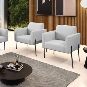 Poltrona Pé de Ferro Preto Kit 2 Decorativa Marisa Linho D03 - D`Rossi - Cinza