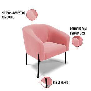 Poltrona Pé De Ferro Preto Kit 2 Stella Suede D03 - D'rossi Cor Rose