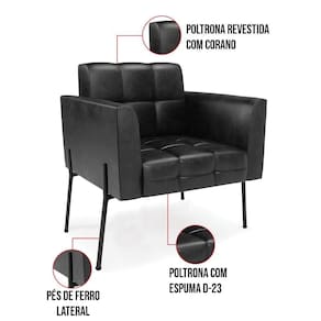 Você gosta de colecionar vários momentos memoráveis com sua família e amigos? Que tal recebê-los, com móveis de altíssima qualidade que só a D'Rossi tem? A Poltrona Elisa é adequada para você! Seu design retrô é a grande tendência do momento. Pode ser usada em diversos espaços da casa, em salas, hall de entrada, quartos, cozinhas, varanda, sacada, escritório, dentre outros. Contém as seguintes características: A estrutura é feita Madeira de Eucalipto 100% de reflorestamento, Pés de Ferro Preto que além de ser resistente e durável, suporta em média até 120 kg. Assento, encosto e braços, contém enchimento de espuma D-23 e é estofada em tecido Corano, que oferece muito conforto e resistência ao sentar, com aquela sensação de maciez e aconchego. Possui também, detalhes de costura no encosto e assento, resultando em um acabamento impecável, conferindo muito mais valor e elegância ao seu espaço. Para complementar a decoração com essa linda poltrona, a dica é utilizar mantas, almofadas ou vasinho de flor. E pronto, seu cantinho estará perfeito para descansar e relaxar! Aqui, você encontra várias opções, para que seus amigos e familiares se sintam acolhidos. Garanta já sua Poltrona.