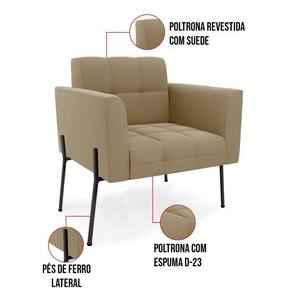 Você gosta de colecionar vários momentos memoráveis com sua família e amigos? Que tal recebê-los, com móveis de altíssima qualidade que só a D'Rossi tem? A Poltrona Elisa é adequada para você! Seu design retrô é a grande tendência do momento. Pode ser usada em diversos espaços da casa, em salas, hall de entrada, quartos, cozinhas, varanda, sacada, escritório, dentre outros. Contém as seguintes características: A estrutura é feita Madeira de Eucalipto 100% de reflorestamento, Pés de Ferro Preto que além de ser resistente e durável, suporta em média até 120 kg. Assento, encosto e braços, contém enchimento de espuma D-23 e é estofada em tecido Suede no tom Marrom Rato, que oferece muito conforto e resistência ao sentar, com aquela sensação de maciez e aconchego. Possui também, detalhes de costura no encosto e assento, resultando em um acabamento impecável, conferindo muito mais valor e elegância ao seu espaço. Para complementar a decoração com essa linda poltrona, a dica é utilizar mantas, almofadas ou vasinho de flor. E pronto, seu cantinho estará perfeito para descansar e relaxar! Aqui, você encontra várias opções, para que seus amigos e familiares se sintam acolhidos. Garanta já sua Poltrona.