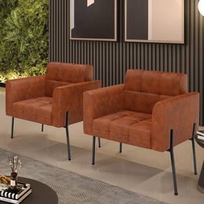 Você gosta de colecionar vários momentos memoráveis com sua família e amigos? Que tal recebê-los, com móveis de altíssima qualidade que só a D'Rossi tem? A Poltrona Elisa é adequada para você! Seu design retrô é a grande tendência do momento. Pode ser usada em diversos espaços da casa, em salas, hall de entrada, quartos, cozinhas, varanda, sacada, escritório, dentre outros. Contém as seguintes características: A estrutura é feita Madeira de Eucalipto 100% de reflorestamento, Pés de Ferro Preto que além de ser resistente e durável, suporta em média até 120 kg. Assento, encosto e braços, contém enchimento de espuma D-23 e é estofada em tecido Corano no tom Nozes, que oferece muito conforto e resistência ao sentar, com aquela sensação de maciez e aconchego. Possui também, detalhes de costura no encosto e assento, resultando em um acabamento impecável, conferindo muito mais valor e elegância ao seu espaço. Para complementar a decoração com essa linda poltrona, a dica é utilizar mantas, almofadas ou vasinho de flor. E pronto, seu cantinho estará perfeito para descansar e relaxar! Aqui, você encontra várias opções, para que seus amigos e familiares se sintam acolhidos. Garanta já seu Kit 2 Poltronas..