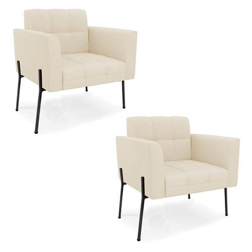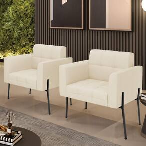 Você gosta de colecionar vários momentos memoráveis com sua família e amigos? Que tal recebê-los, com móveis de altíssima qualidade que só a D'Rossi tem? A Poltrona Elisa é adequada para você! Seu design retrô é a grande tendência do momento. Pode ser usada em diversos espaços da casa, em salas, hall de entrada, quartos, cozinhas, varanda, sacada, escritório, dentre outros. Contém as seguintes características: A estrutura é feita Madeira de Eucalipto 100% de reflorestamento, Pés de Ferro Preto que além de ser resistente e durável, suporta em média até 120 kg. Assento, encosto e braços, contém enchimento de espuma D-23 e é estofada em tecido Linho no tom Bege, que oferece muito conforto e resistência ao sentar, com aquela sensação de maciez e aconchego. Possui também, detalhes de costura no encosto e assento, resultando em um acabamento impecável, conferindo muito mais valor e elegância ao seu espaço. Para complementar a decoração com essa linda poltrona, a dica é utilizar mantas, almofadas ou vasinho de flor. E pronto, seu cantinho estará perfeito para descansar e relaxar! Aqui, você encontra várias opções, para que seus amigos e familiares se sintam acolhidos. Garanta já seu Kit 2 Poltronas..
