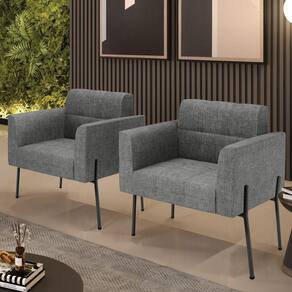 Você gosta de colecionar vários momentos memoráveis com sua família e amigos? Que tal recebê-los, com móveis de altíssima qualidade que só a D'Rossi tem? A Poltrona Elisa é adequada para você! Seu design retrô é a grande tendência do momento. Pode ser usada em diversos espaços da casa, em salas, hall de entrada, quartos, cozinhas, varanda, sacada, escritório, dentre outros. Contém as seguintes características: A estrutura é feita Madeira de Eucalipto 100% de reflorestamento, Pés de Ferro Preto que além de ser resistente e durável, suporta em média até 120 kg. Assento, encosto e braços, contém enchimento de espuma D-23 e é estofada em tecido Linho, que oferece muito conforto e resistência ao sentar, com aquela sensação de maciez e aconchego. Possui também, detalhes de costura no encosto e assento, resultando em um acabamento impecável, conferindo muito mais valor e elegância ao seu espaço. Para complementar a decoração com essa linda poltrona, a dica é utilizar mantas, almofadas ou vasinho de flor. E pronto, seu cantinho estará perfeito para descansar e relaxar! Aqui, você encontra várias opções, para que seus amigos e familiares se sintam acolhidos. Garanta já seu Kit 2 Poltronas..