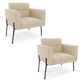Poltrona Pé De Ferro Preto Para Sala Kit 2 Elisa Suede D03 - D'rossi Cor Bege