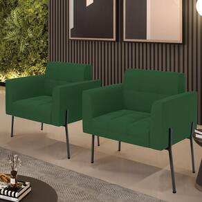 Você gosta de colecionar vários momentos memoráveis com sua família e amigos? Que tal recebê-los, com móveis de altíssima qualidade que só a D'Rossi tem? A Poltrona Elisa é adequada para você! Seu design retrô é a grande tendência do momento. Pode ser usada em diversos espaços da casa, em salas, hall de entrada, quartos, cozinhas, varanda, sacada, escritório, dentre outros. Contém as seguintes características: A estrutura é feita Madeira de Eucalipto 100% de reflorestamento, Pés de Ferro Preto que além de ser resistente e durável, suporta em média até 120 kg. Assento, encosto e braços, contém enchimento de espuma D-23 e é estofada em tecido Veludo, que oferece muito conforto e resistência ao sentar, com aquela sensação de maciez e aconchego. Possui também, detalhes de costura no encosto e assento, resultando em um acabamento impecável, conferindo muito mais valor e elegância ao seu espaço. Para complementar a decoração com essa linda poltrona, a dica é utilizar mantas, almofadas ou vasinho de flor. E pronto, seu cantinho estará perfeito para descansar e relaxar! Aqui, você encontra várias opções, para que seus amigos e familiares se sintam acolhidos. Garanta já seu Kit 2 Poltronas..