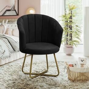 Poltrona Pérola Base De Metal Dourada Veludo - Star Confort Preto