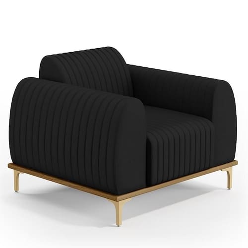Com muita idade e personalidade a Poltrona Decorativa Base De Madeira Pés Metalizado D'Ouro Molino D02 Veludo Preto C-300 - Lyam Decor vem para requintar ainda mais sua decoração. Bastante sofisticada, é ideal se você está buscando uma peça elegante e confortável. Possui acabamentos impecáveis, é estruturada em madeira de eucalipto tratado, unidas com grampos galvanizados, base envernizada e pés de alumínio na cor DOuro que a tornam ainda mais atraente e convidativa.