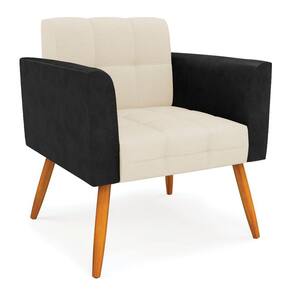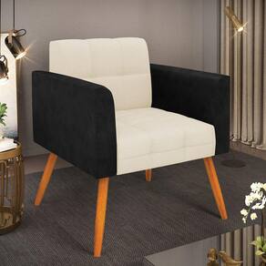 Você gosta de colecionar vários momentos memoráveis com sua família e amigos? Que tal recebê-los, com móveis de altíssima qualidade que só a D'Rossi tem? A Poltrona Elisa é adequada para você! Seu design retrô é a grande tendência do momento. Pode ser usada em diversos espaços da casa, em salas, hall de entrada, quartos, cozinhas, varanda, sacada, escritório, dentre outros. Contém as seguintes características: A estrutura é feita de madeira de Eucalipto 100% de reflorestamento, e a Pés Palito Castanho, além de ser resistente e durável, suporta em média até 120 kg. Assento, encosto e braços, contém enchimento de espuma D-23 e é estofada em tecido Corano Preto com Linho, no tom Bege, que oferece muito conforto e resistência ao sentar, com aquela sensação de maciez e aconchego. Possui também, detalhes de costura no encosto e assento, resultando em um acabamento impecável, conferindo muito mais valor e elegância ao seu espaço. Para complementar a decoração com essa linda poltrona, a dica é utilizar mantas, almofadas ou vasinho de flor. E pronto, seu cantinho estará perfeito para descansar e relaxar! Aqui, você encontra várias opções, para que seus amigos e familiares se sintam acolhidos. Garanta já sua Poltrona.