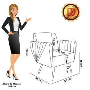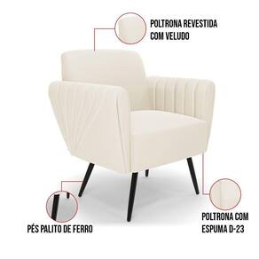 Só aqui na DRossi você encontra a decoração que você merece, com a praticidade que você precisa! A Poltrona Bruna é uma peça de mobiliário moderna e elegante que pode ser usada em uma variedade de ambientes! Fica perfeita na sala, escritório, quarto, varanda coberta e onde mais preferir! Uma poltrona super reforçada, que possui uma estrutura em madeira de reflorestamento, ideal para garantir mais segurança e comodidade ao usuário. Revestida no Veludo Bege, seu estofamento é feito em espuma D-23 um material de alta qualidade, ideal para deixar o assento firme e mais resistente. Os pés palito de ferro adicionam um toque moderno e elegante à poltrona, oferecendo maior segurança e um visual de enriquecer qualquer espaço. Além do mais, a braças da poltrona possui detalhes sutis e discretos com frisos no tecido, que oferecem uma aparência extremamente sofisticada à peça. A Poltrona Bruna é uma excelente opção para quem deseja adicionar um toque de estilo e luxuosidade a qualquer cômodo. Se você está procurando por um móvel confortável e elegante, esta poltrona é a escolha perfeita para você.