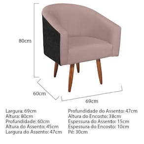 - Altura: 80 cm; - Largura: 69 cm; - Profundidade: 60 cm; - Altura do Assento: 45 cm; - Largura do Assento: 47 cm; - Profundidade do Assento: 47 cm; - Altura do Encosto: 38 cm; - Espessura do Assento: 15 cm; - Espessura do Encosto: 10 cm; - Altura dos Pés: 30 cm; - Peso Suportado: 120 kg.