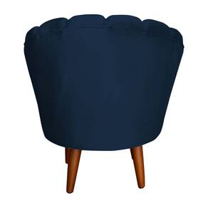 Poltrona Pétala Elegancia Decorativa Com Pés De Madeira Marinho - Azul Marinho