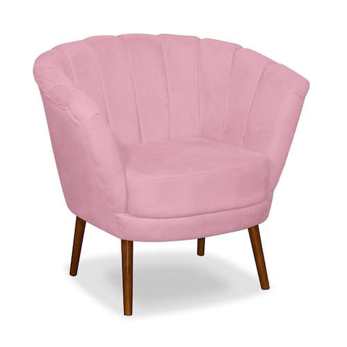 Poltrona Pétala Flor Decorativa Suede Rosa Bebê