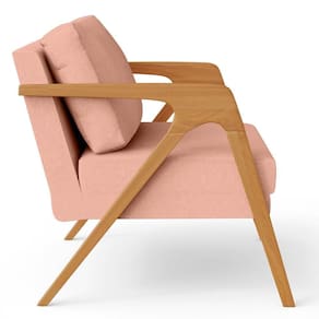 A Poltrona Decorativa Para Sala De Estar Pietra Com Estrutura De Madeira L02 Linho Rosê - Lyam Decor se sobressai em qualquer ambiente, permite diversas combinações harmônicas e ainda proporciona muito aconchego. A mistura da estrutura de madeira com o revestimento convencional dela, somados ao seu ar geométrico garantem extrema idade e personalidade para sua decoração.