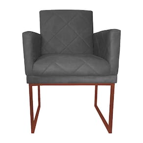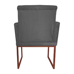 Poltrona Recepção Klara Suede Cinza Base Industrial Cobre - Vallisa Decor