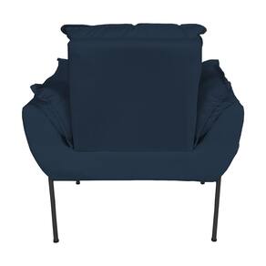Poltrona Recepção Suede Azul Marinho Base Preta - Vallisa Decor