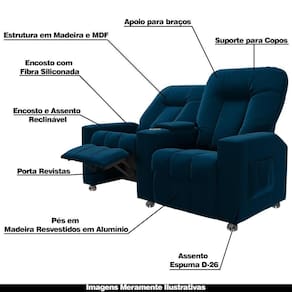Poltrona Reclinável 2 Lugares Sala De Cinema Romeo F05 Veludo Azul Marinho - Lyam Decor