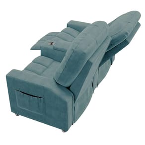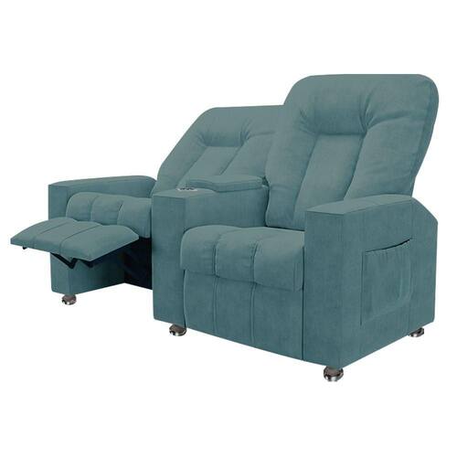 Poltrona Reclinável 2 Lugares Para Sala De Cinema Pequim Veludo Azul Claro - Gran Belo