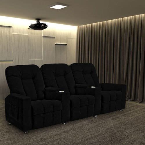 Poltrona Sala de Cinema Arsenal 3 Lugares - Gran Belo é o que falta para que sua sala se torne um verdadeiro cinema. Possuindo mecanismo de 2 estágios e 3 posições, a poltrona Arsenal é produzida para dar maior flexibilidade e resistência, são usadas percintas elásticas em sua estrutura, obtendo uma durabilidade maior, e tudo isso sem abrir mão do conforto. Adquira já!