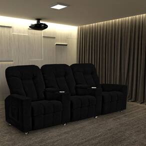 Poltrona Reclinável 3 Lugares Para Sala De Cinema Romeo F05 Veludo Preto - Lyam Decor